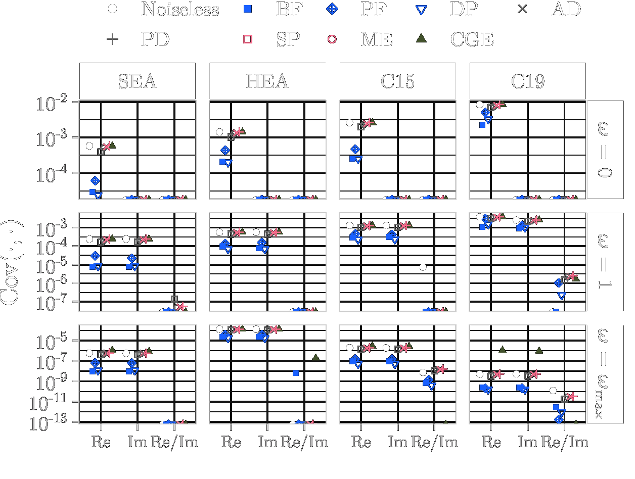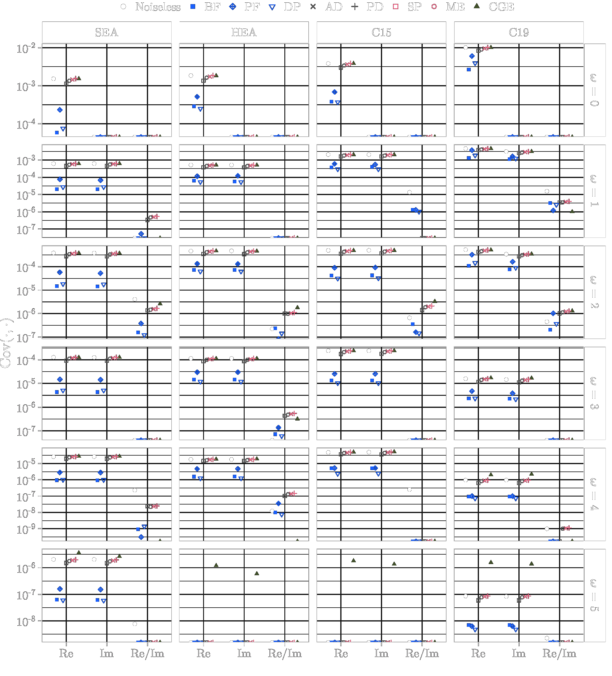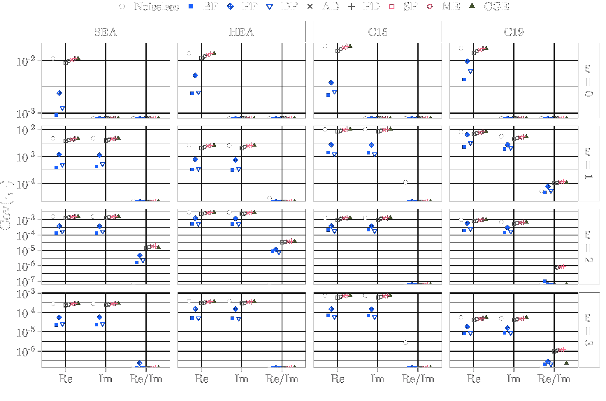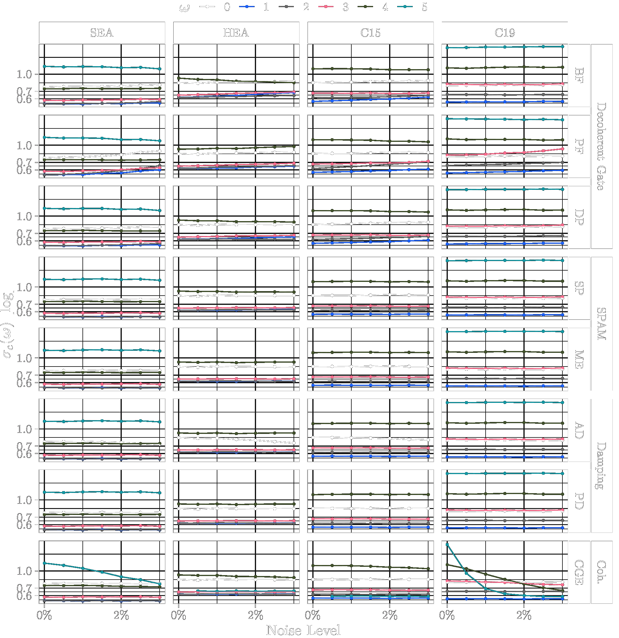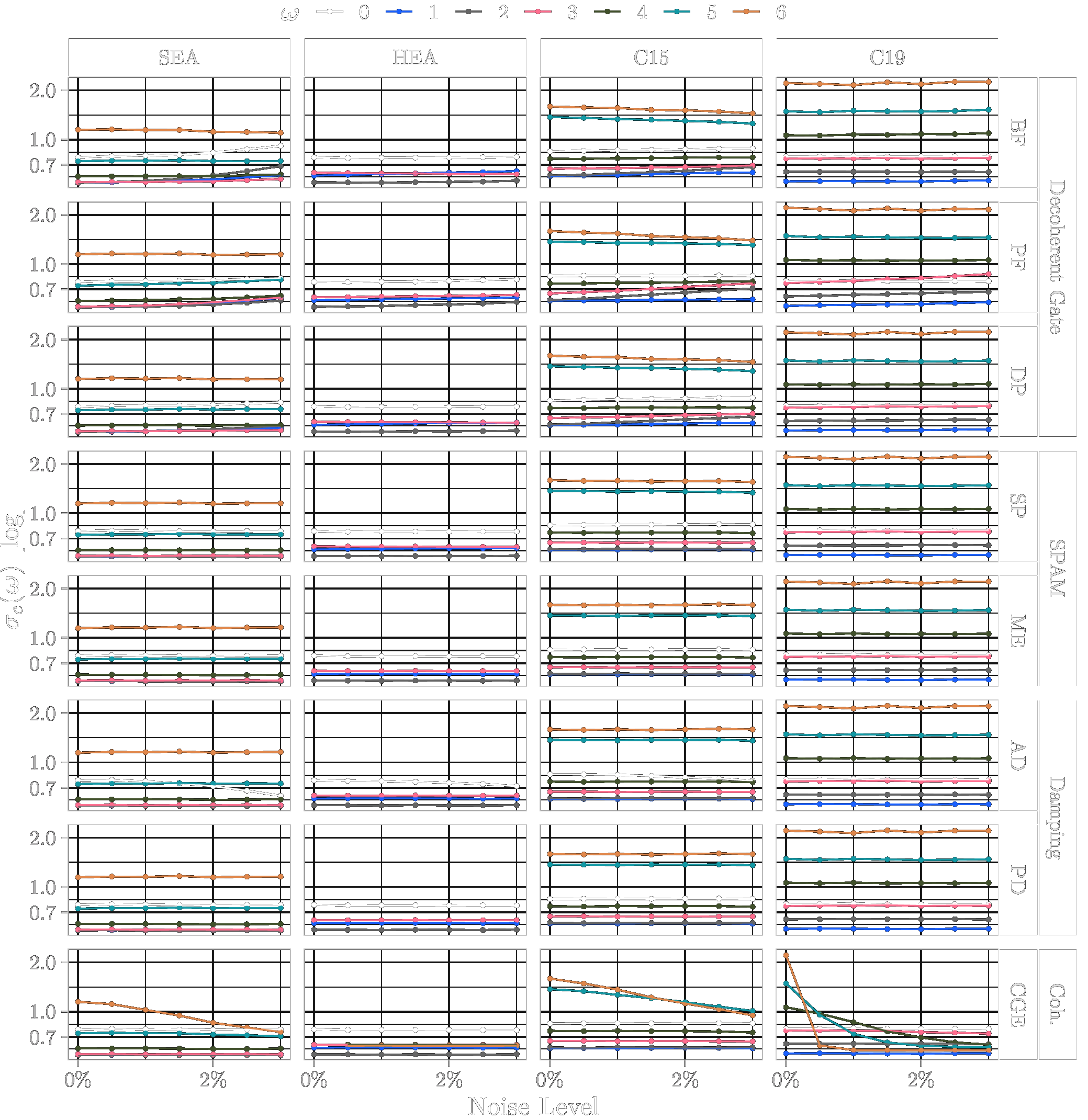 This page lists the individual results for for circuits with the one-dimensional encoding \(R_Y\) and varying qubit counts \([3\dots 6]\). In particular, for each configuration the results comprise of the absolute coefficient mean \(\mu_c(\boldsymbol{\omega})\), the corresponding relative standard deviation \(\sigma_c(\boldsymbol{\omega})\) and the covariance (\(\text{Cov}(\cdot, \cdot)\)). In the paper these results would correspond to Figure 6a, Figure 6b and Figure 4. Shown here are the plots for all qubit numbers.
