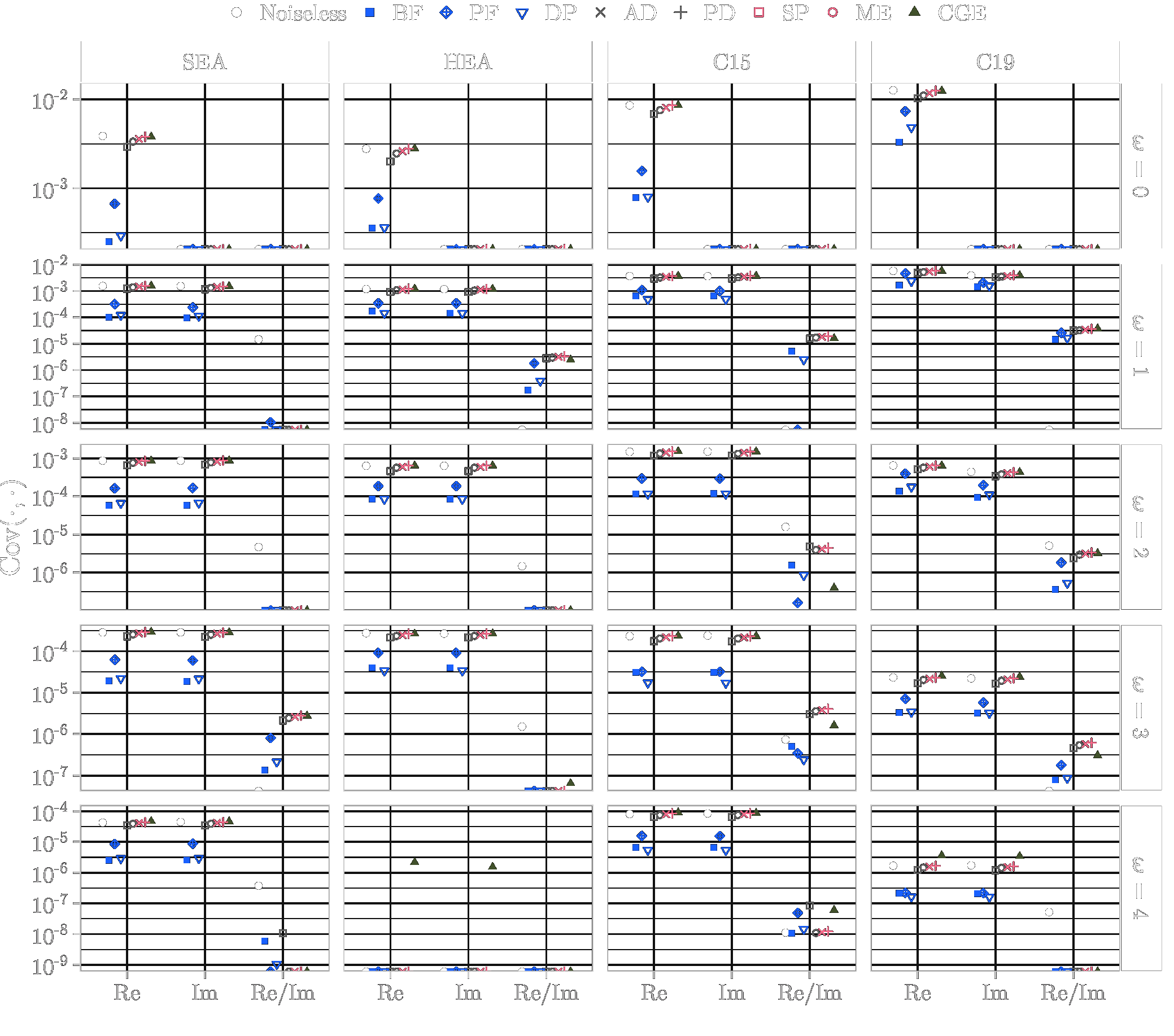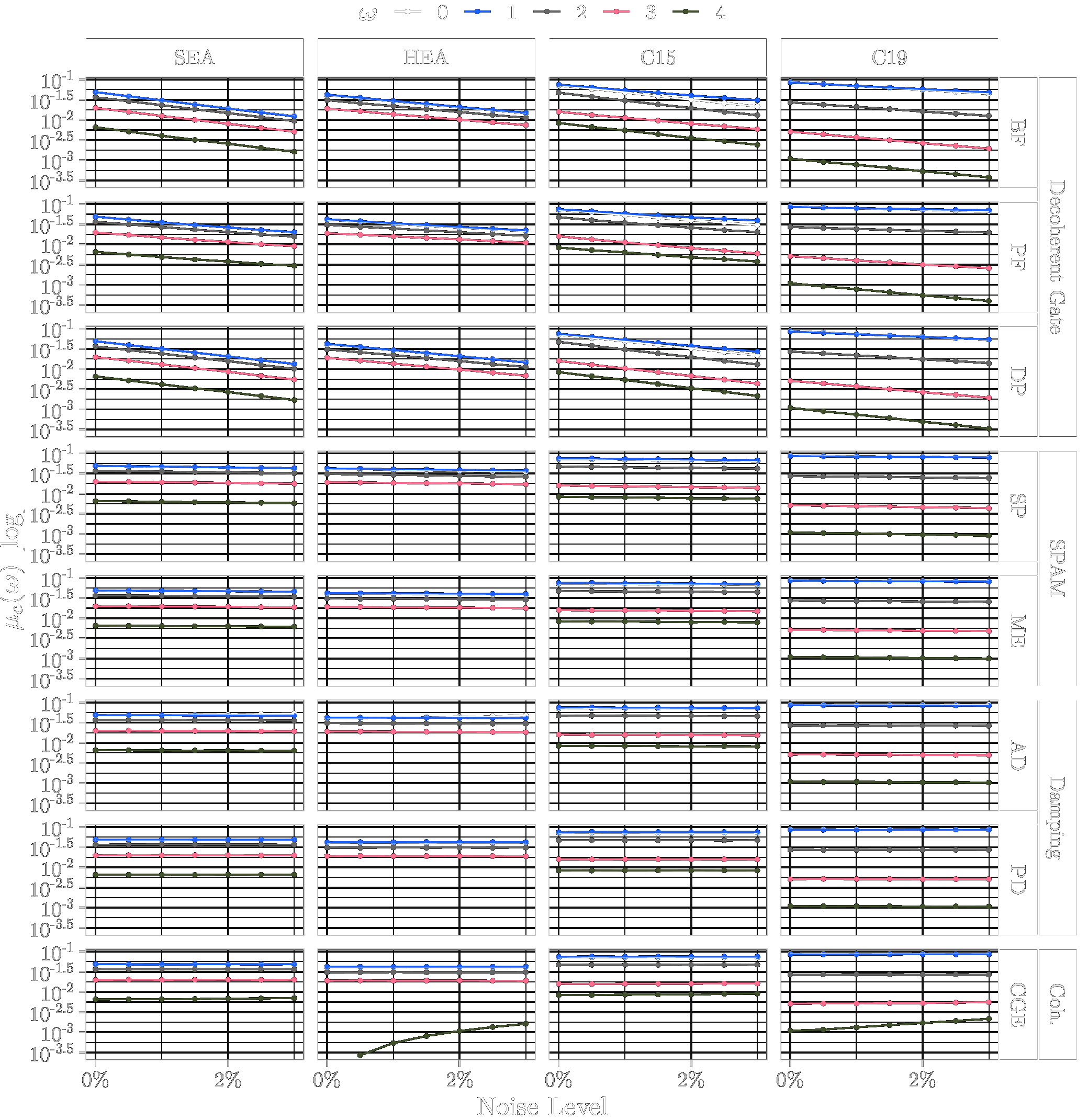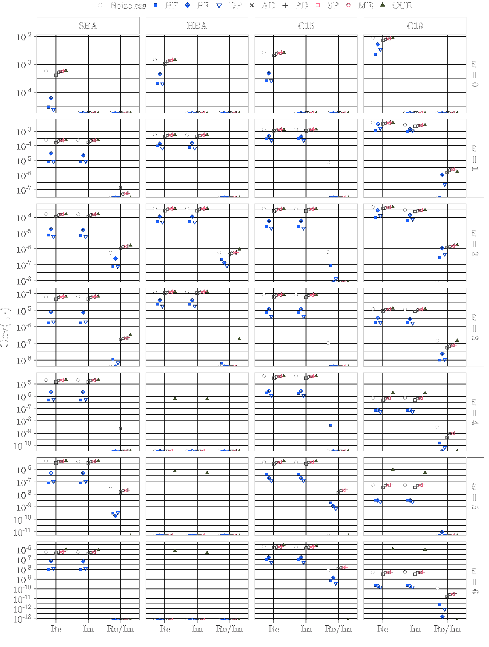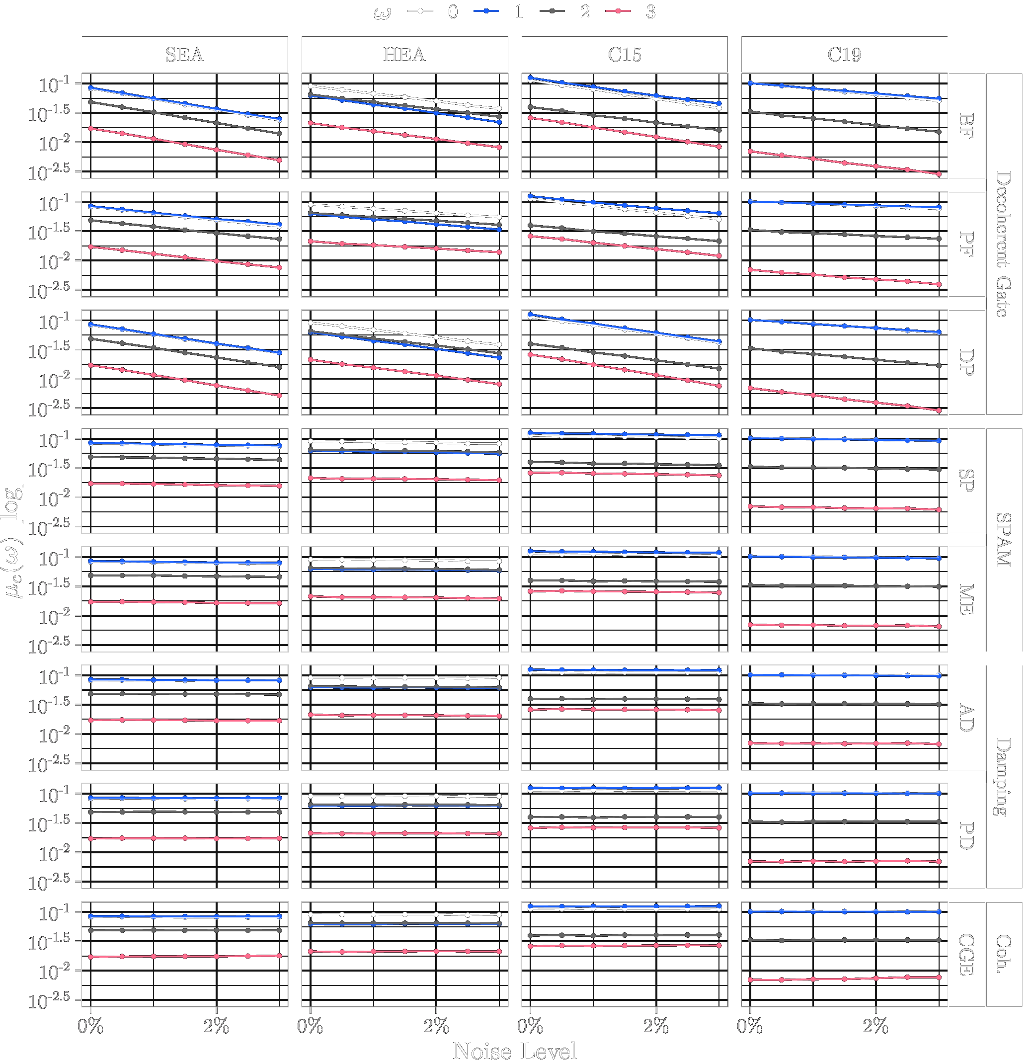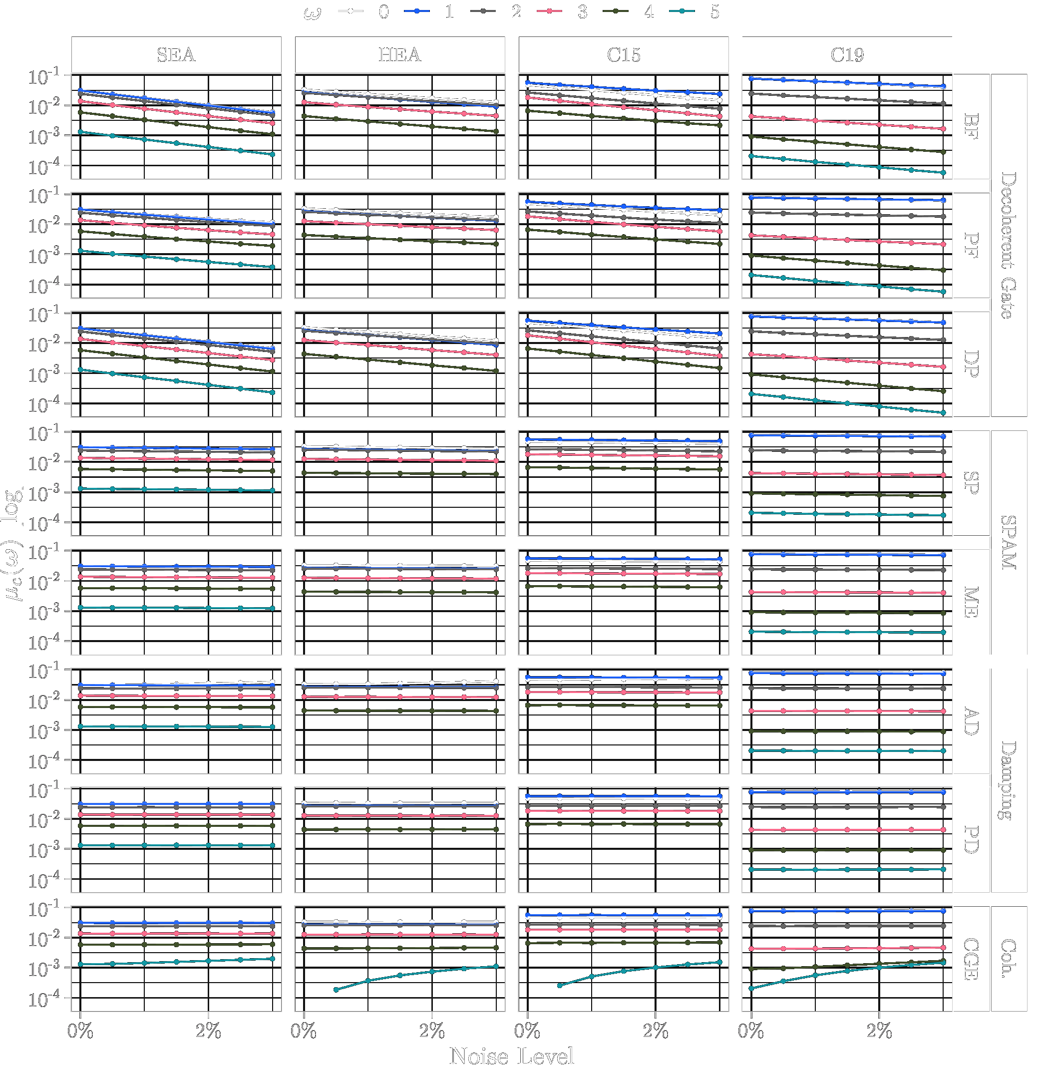 This page lists the individual results for for circuits with the one-dimensional encoding \(R_Y\) and varying qubit counts \([3\dots 6]\). In particular, for each configuration the results comprise of the absolute coefficient mean \(\mu_c(\boldsymbol{\omega})\), the corresponding relative standard deviation \(\sigma_c(\boldsymbol{\omega})\) and the covariance (\(\text{Cov}(\cdot, \cdot)\)). In the paper these results would correspond to Figure 6a, Figure 6b and Figure 4. Shown here are the plots for all qubit numbers.